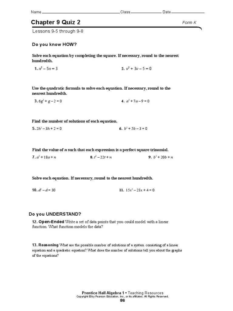 Prentice Hall Gold Algebra Quiz 2 Pdf