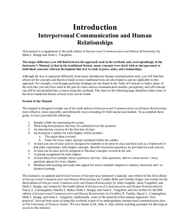 Interpersonal Communication And Human Relationships 6th Edition Knapp