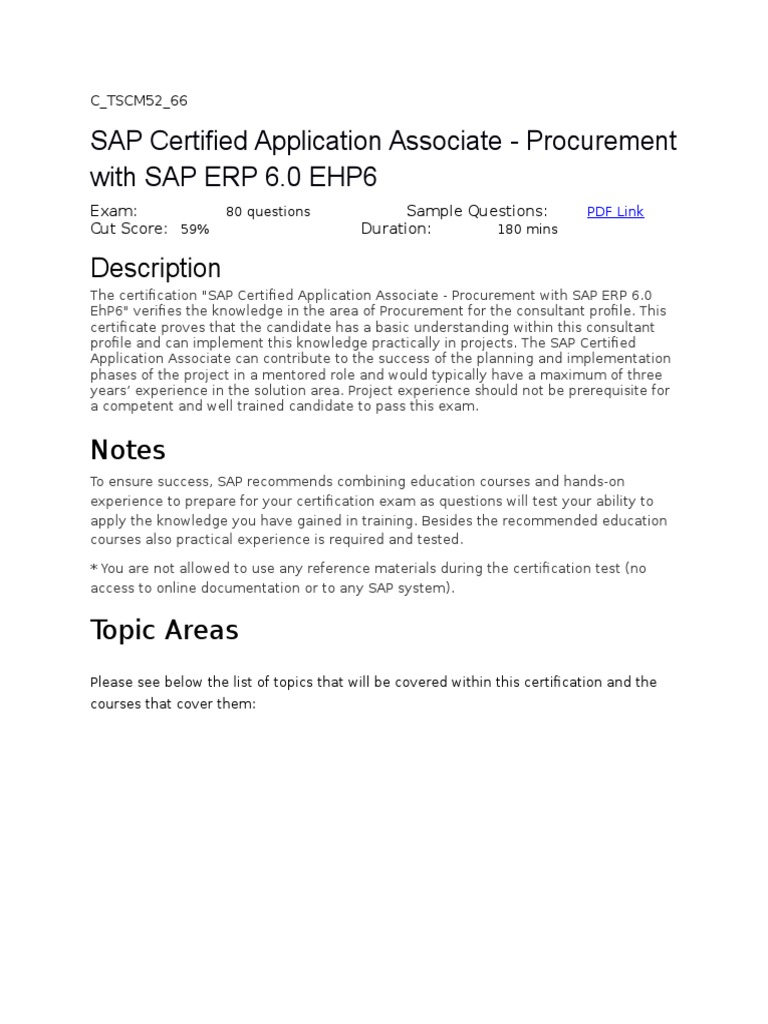 Test dates can be chosen and booked individuallythose of you who prefer to get certified on site at an sap training center instead can still do so. Printable sap ctscm5205 pdf format. Tscm52 sap erp procurement academy ii part 1. Sap education sample questions.