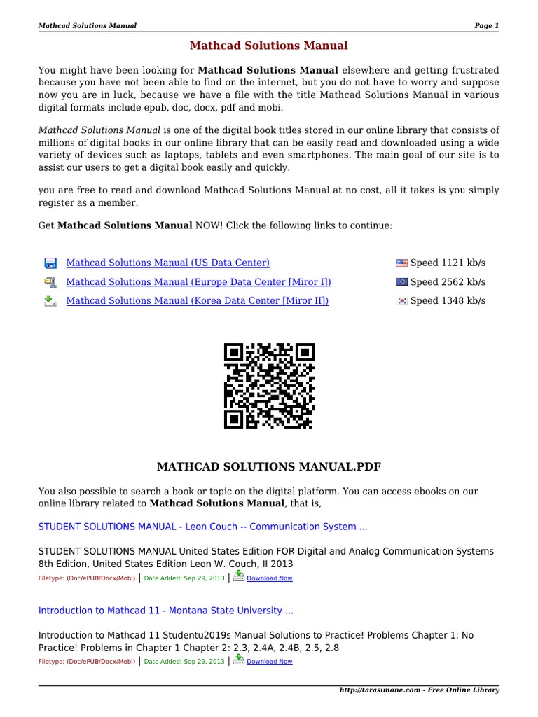 Solution Manual For Introduction To Mathcad 15 Pdf