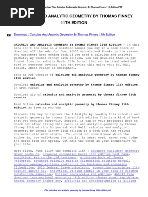 Calculus And Analytic Geometry By Thomas Finney 11th Edition E